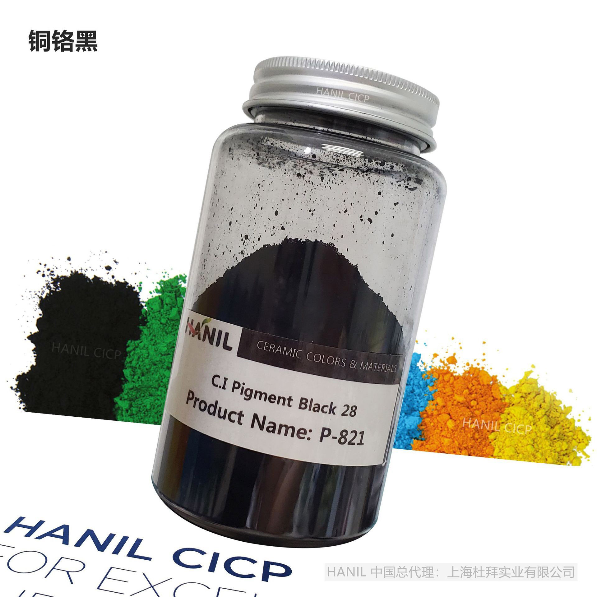 进口HANIL海丽安复合无机颜料铜铬黑 P-821,具有出色的耐候性, 耐光性, 耐高温800℃以上, 优异的耐化学性, 耐酸碱 ,容易分散。 四十多年制造经验,历经时间与高温的淬炼,品质稳定,原装进口,高温煅烧使其晶体结构牢固,并具有优异的化学性能,广泛应用于建筑涂料、粉末涂料、卷材涂料、油墨、搪瓷、陶瓷、玻璃、美术颜料、美甲、皮革、纤维以及各种类型的塑料和聚合物材料。